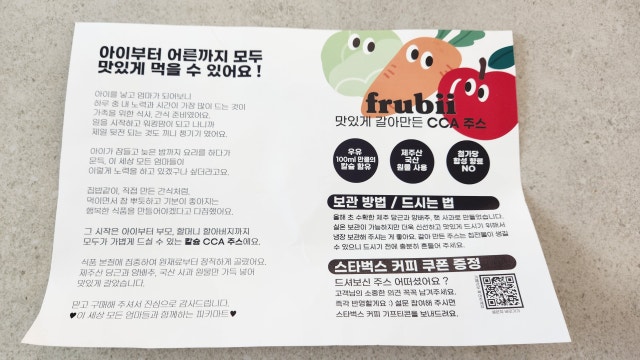 구매하고 한달 지나서 쓰는 리뷰입니다~ '집밥같이, 직접 만든 간식처럼'이 어울리는 주스에요. 달달한 그런 주스 아니고, 그렇다고 맛 없어서 못 먹겠는 그런 주스도 아니에요. 요즘처럼 날씨 더워서 갈증날 때 저는 이 주스가 마시고 싶더라구요. 설명처럼 냉장보관하고 마시는 게 더 맛있어요. 깔끔하고 원재료도 정직하게 골라 만든 주스라니 좀 더 안심하고 마실 수 있을 거 같아서 좋았습니다. 아이에게 주기도 좀 더 마음이 놓였어요.